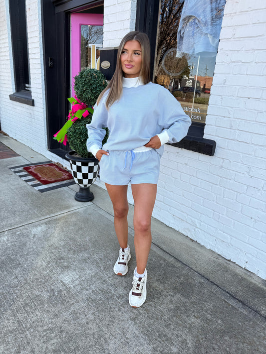 Blue/White Striped Mock neck Sweatshirt